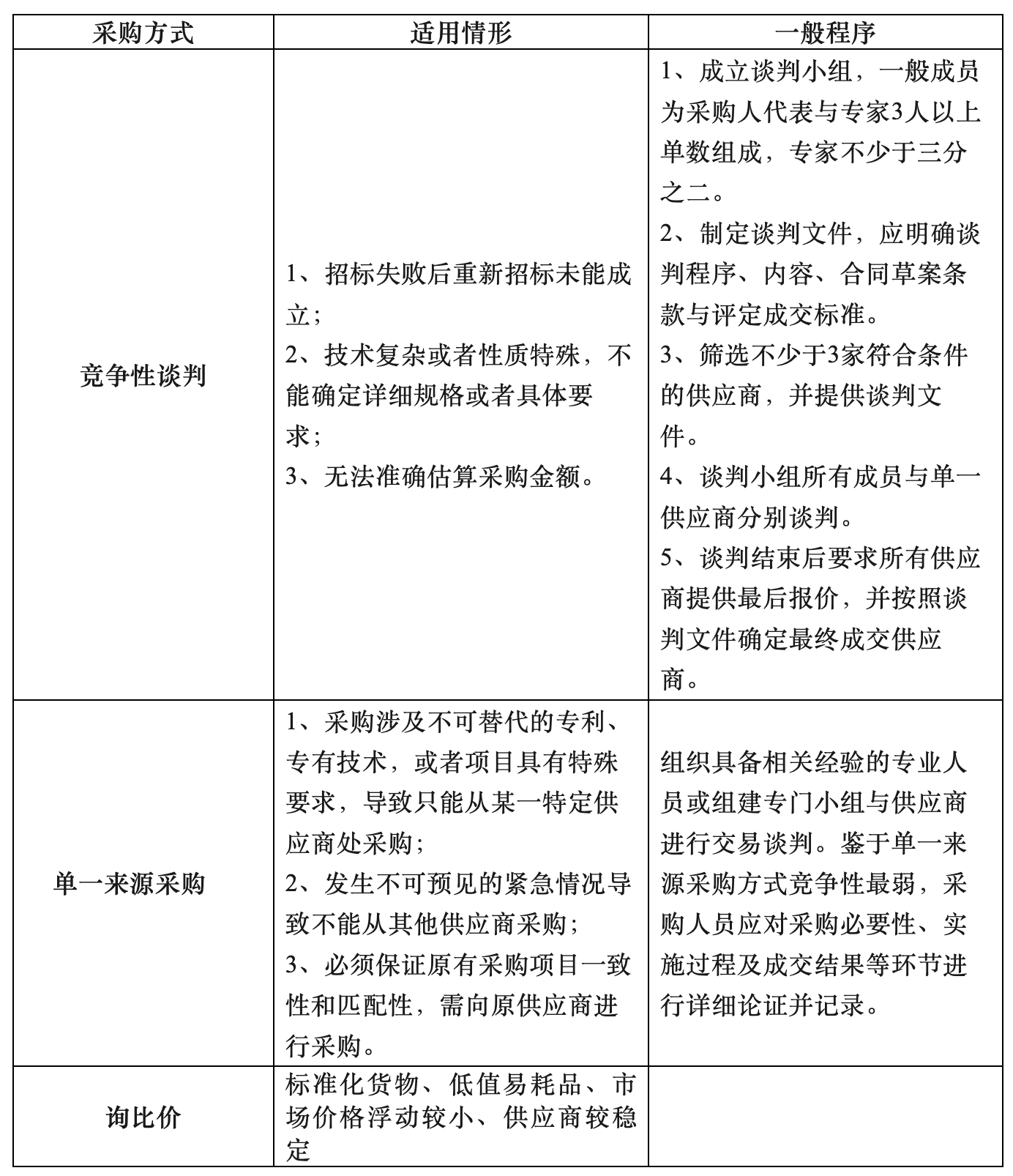 央国企常见采购方式介绍(具体范围、适用情形与一般程序)