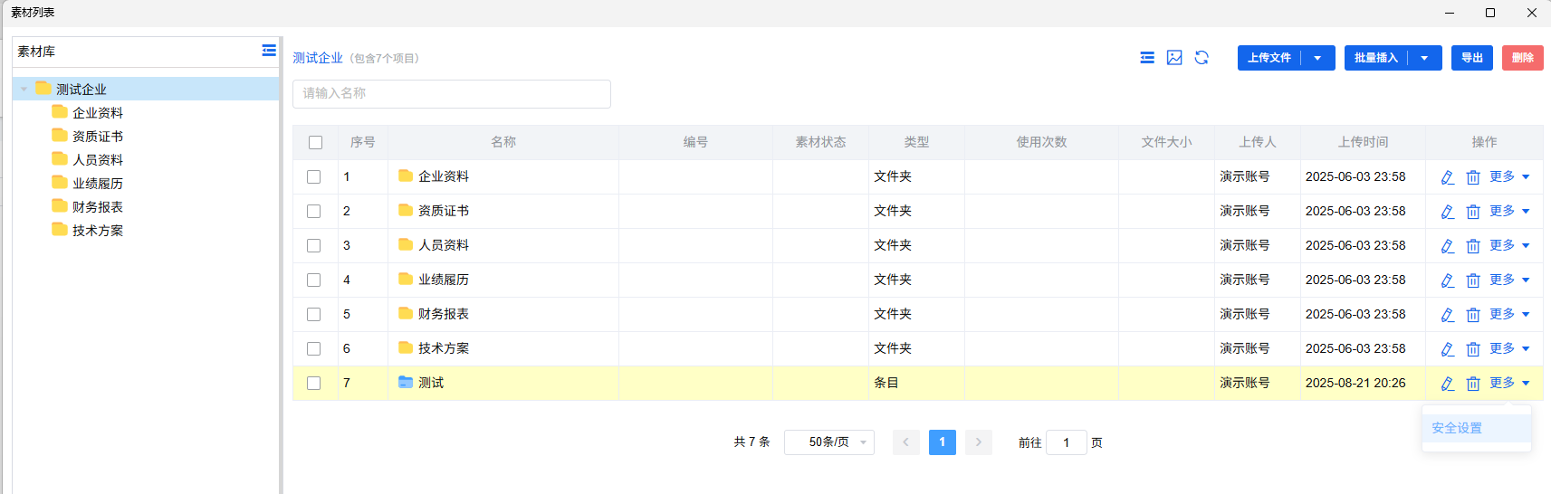 作为投标工作的 “弹药库”,素材库的效率直接决定投标节奏。本次升级让素材管理迎来质的飞跃: